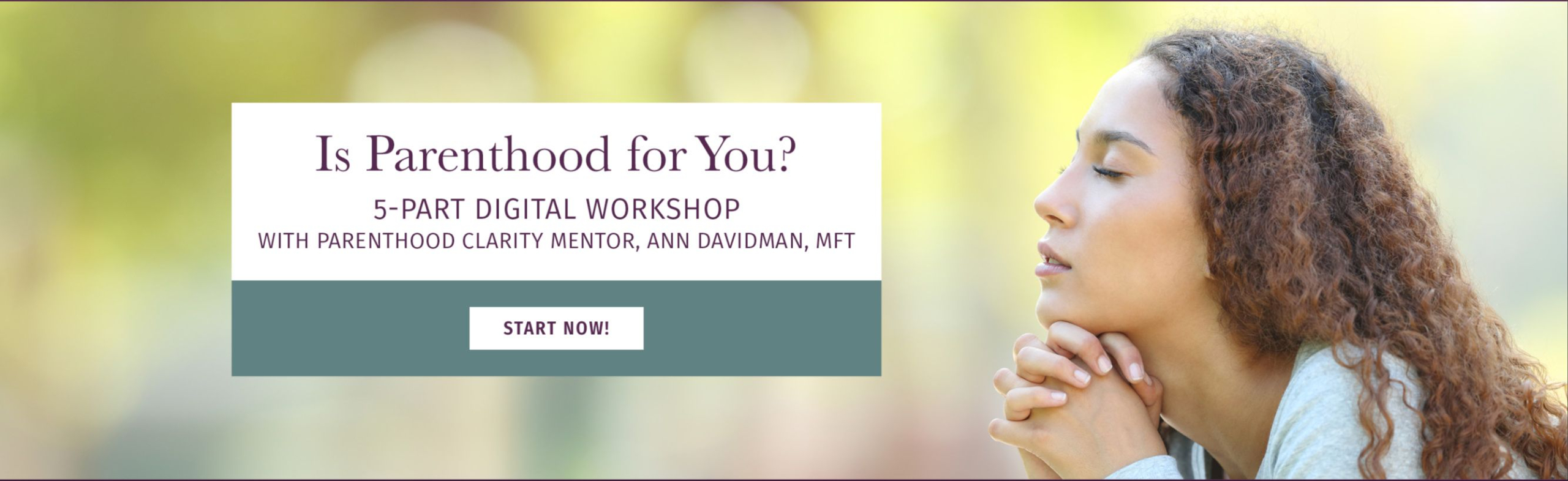 You can find clarity on your parenthood journey with Ann through several powerful pathways. She offers a wide variety of resources and courses for anyone struggling with the decision of whether to become a parent or remain child-free.
