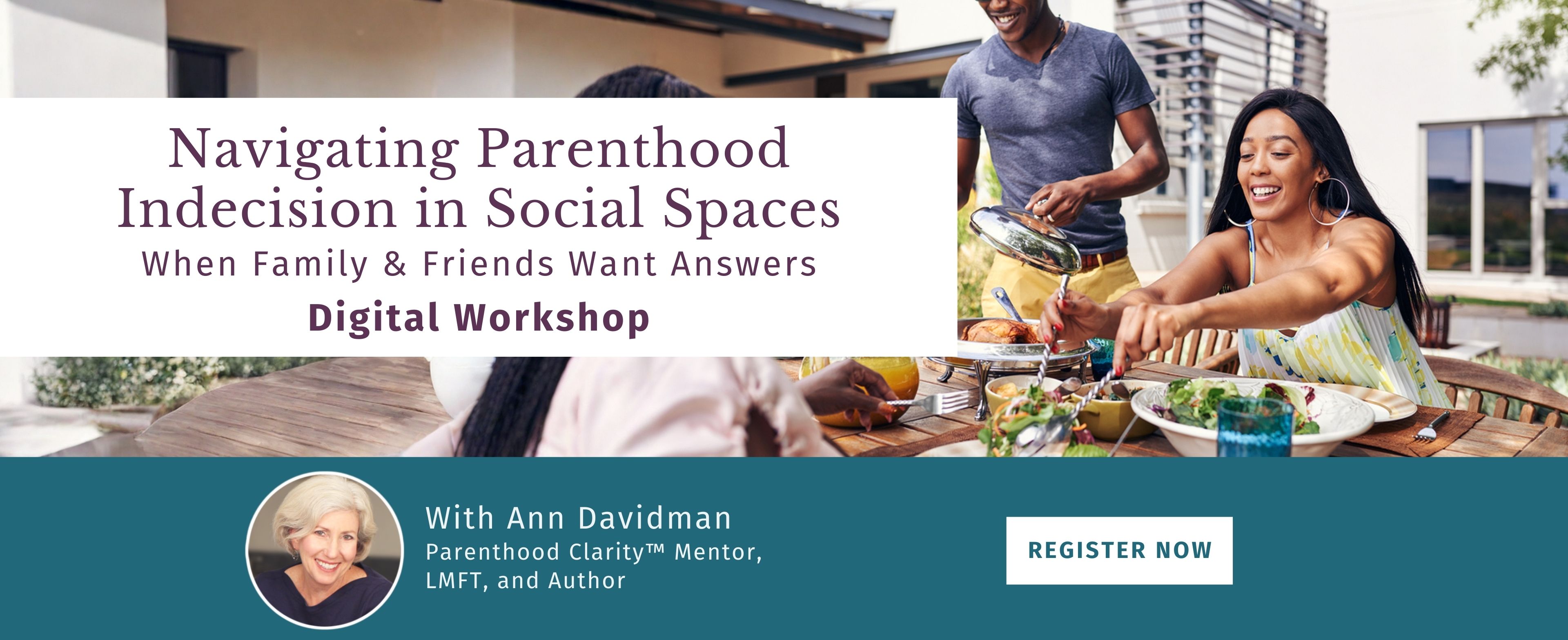 The video above is an excerpt from Ann’s full-length on-demand workshop, “Navigating Parenthood Indecision in Social Spaces: When Family & Friends Want Answers.”