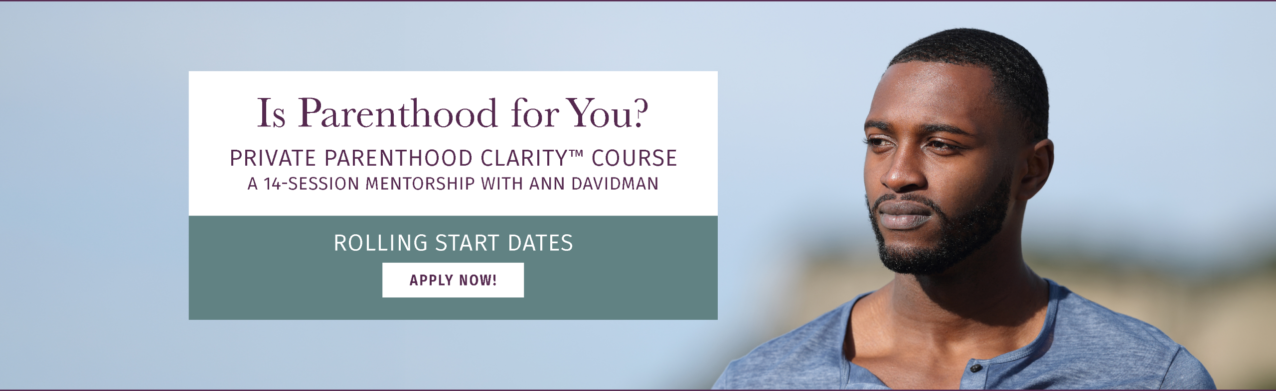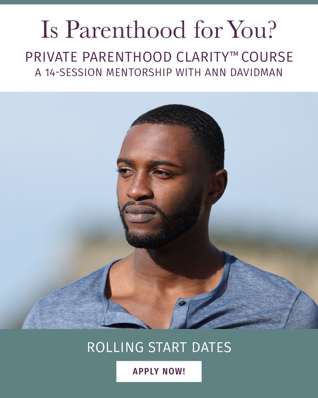 You’re invited to receive private mentorship from Ann Davidman, Parenthood Clarity™ Mentor, licensed marriage and family therapist, and creator of The Parenthood Clarity™ Courses, in-depth programs that helps those who are struggling with indecision about whether they want to become a parent.